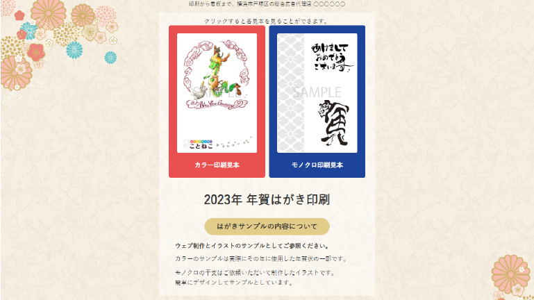 2022年に入社して1か月程度経過した頃、過去ウェブ制作部門に勤めていたこともあり社長より看板のウェブページの変更が出来ないか、また、他の方からも冊子で見る形の年賀状の一覧のウェブページも作成出来るか尋ねられました。